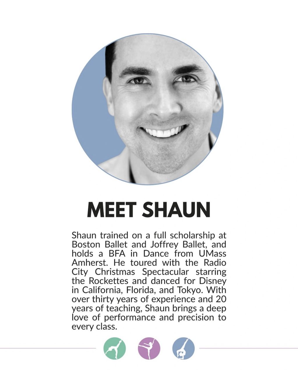 Shaun Curtin began dancing at the age of seven. He trained at The LaPierre School of Dance in Reading, Massachusetts. He also studied at The Boston Ballet and The Joffrey Ballet on full scholarship. He received a BFA cum laude in dance from The University of Massachusetts, Amherst. He has danced professionally for over 25 years He was a member of The Richmond Ballet, Granite State Ballet and Jose